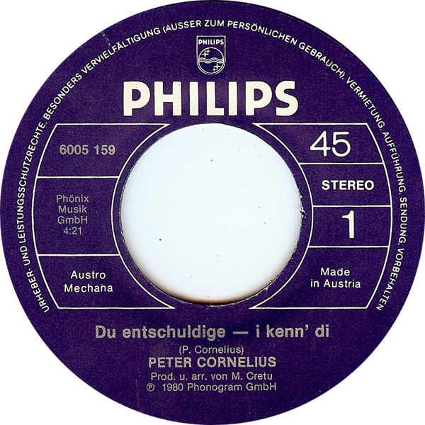 Vinyl / Peter Cornelius - Du Entschuldige - I Kenn' Di