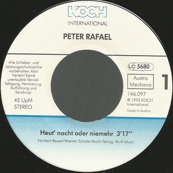 Vinyl / Peter Rafael - Heut' Nacht Oder Niemehr