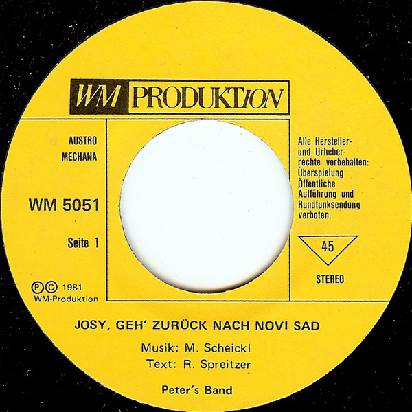 Vinyl / Peter's Band - Josy, Geh' Zurück Nach Novi Sad / Do, Re, Mi, Fa, So Oder So