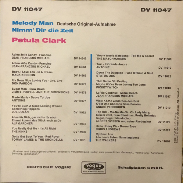 Vinyl / Petula Clark - Melody Man / Nimm Dir Die Zeit