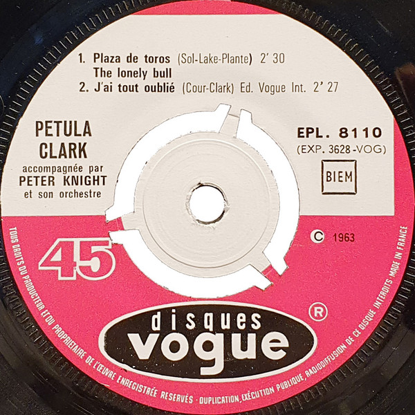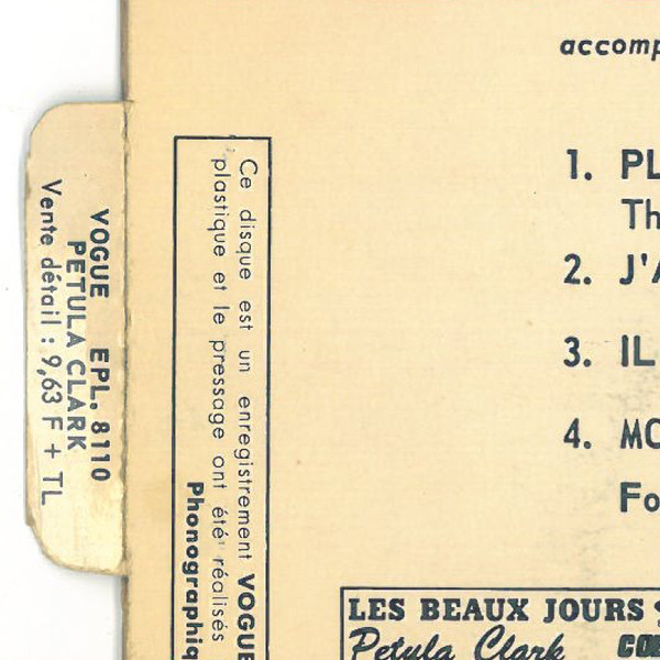 Label: Disques Vogue - Cat#: EPL. 8 110