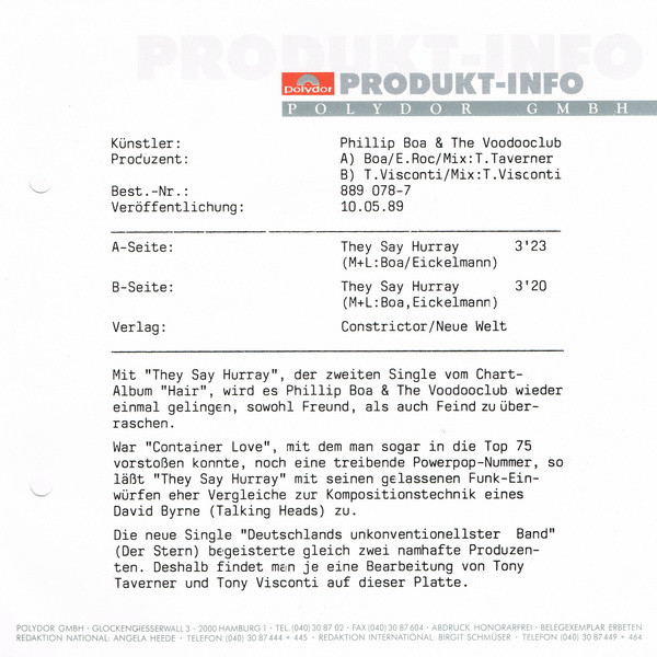 Vinyl / Phillip Boa And The Voodooclub* - They Say Hurray