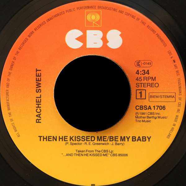 Vinyl / Rachel Sweet - Then He Kissed Me - Be My Baby