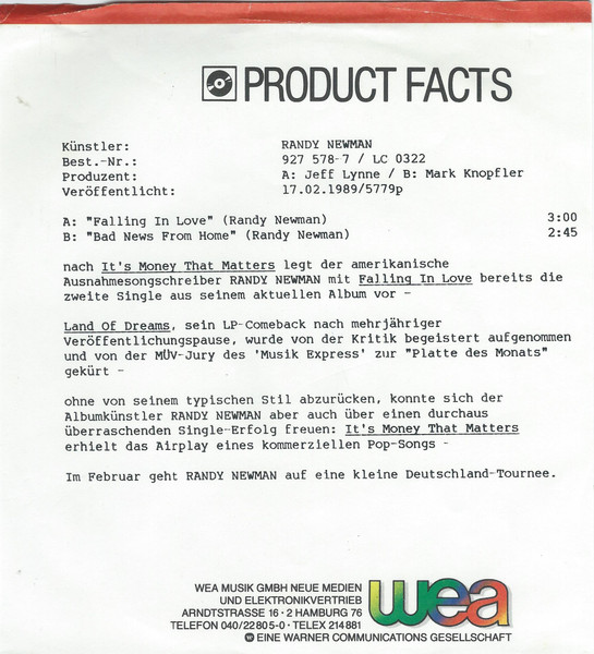 Vinyl / Randy Newman - Falling In Love