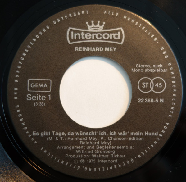 Vinyl / Reinhard Mey - Es Gibt Tage, Da Wünscht' Ich, Ich Wär' Mein Hund
