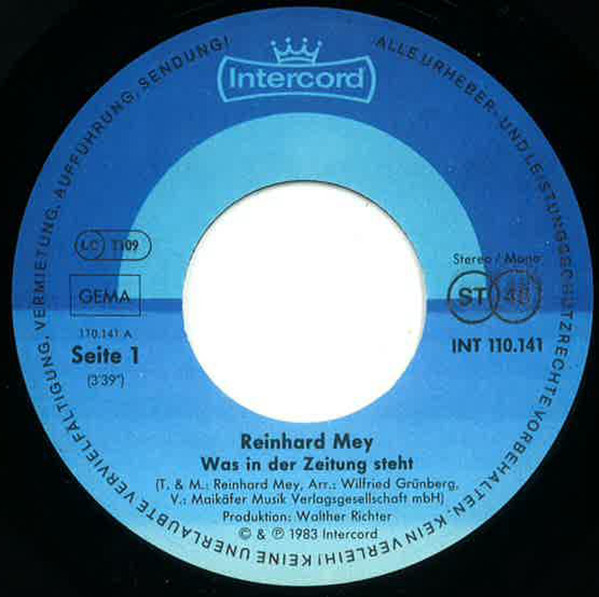 Vinyl / Reinhard Mey - Was In Der Zeitung Steht