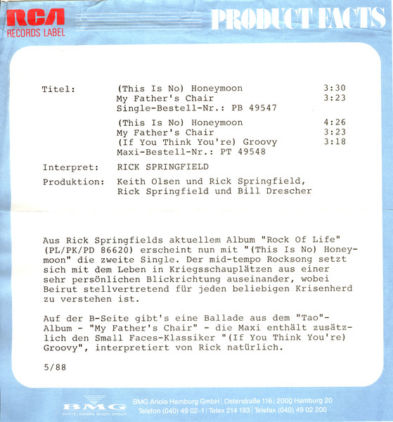 Vinyl / Rick Springfield - (This Is No) Honeymoon
