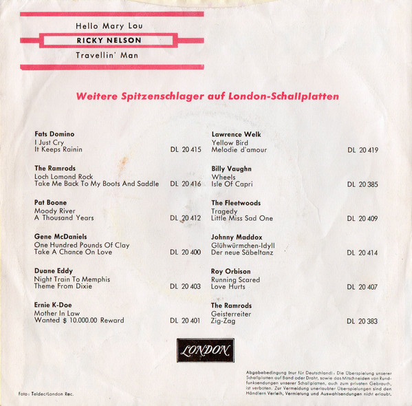 Vinyl / Ricky Nelson (2) - Hello Mary Lou