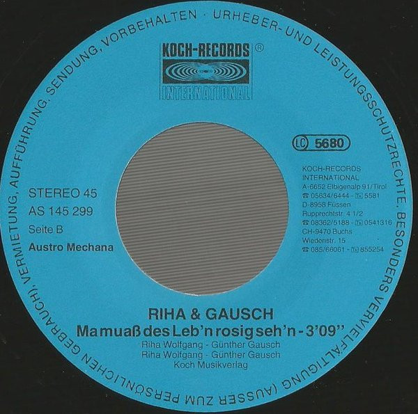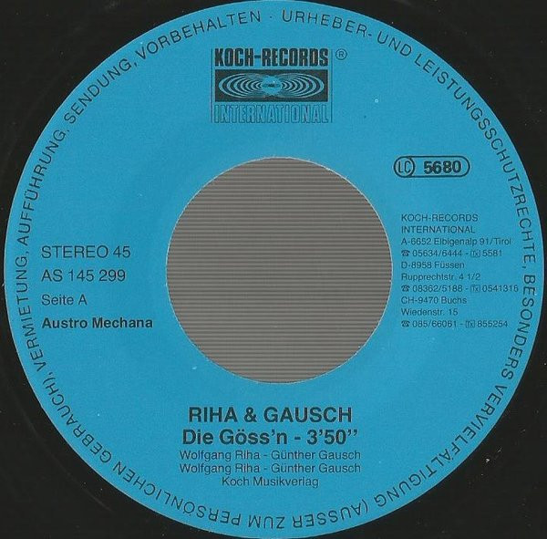 Vinyl / Riha & Gausch - Die Göss'n / Man Muaß Des Leb'n Rosig Seh'n