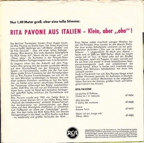 Vinyl / Rita Pavone - Wenn Ich Ein Junge Wär' / Okay! Okay!