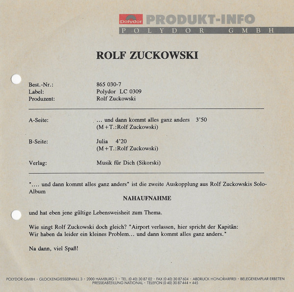 Vinyl / Rolf Zuckowski - ...Und Dann Kommt Alles Ganz Anders