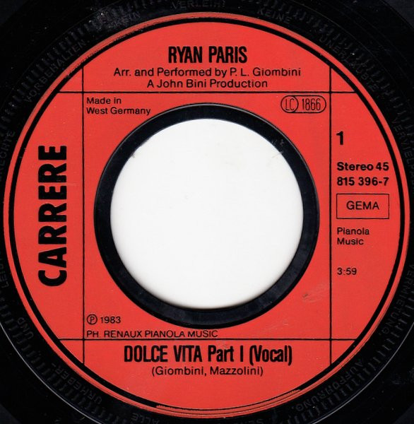 Vinyl / Ryan Paris - Dolce Vita (Original Version)