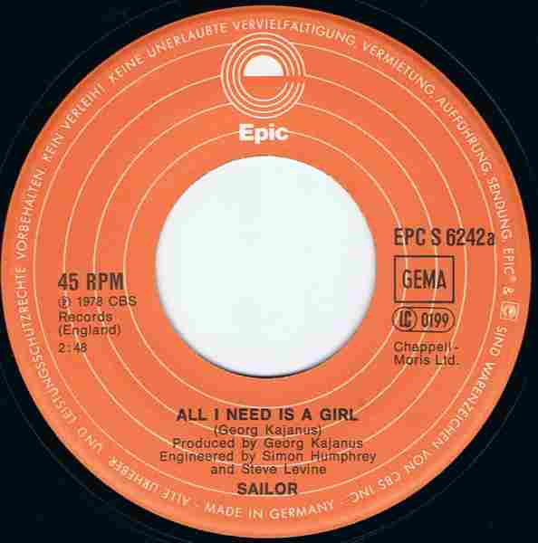 Vinyl / Sailor - All I Need Is A Girl