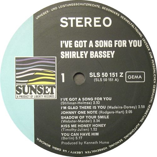 Vinyl / Shirley Bassey - I've Got A Song For You