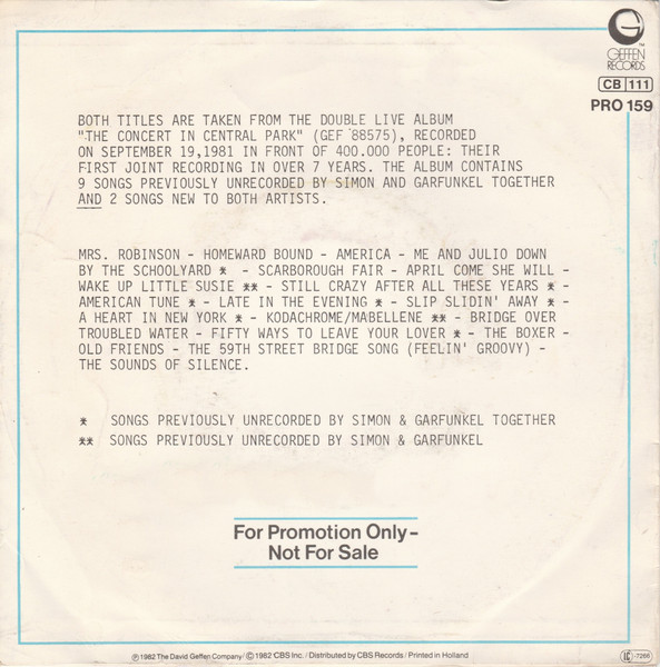 Label: Geffen Records - Cat#: PRO 159