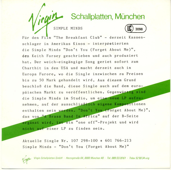 Vinyl / Simple Minds - Don't You (Forget About Me)