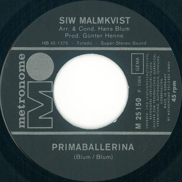 Vinyl / Siw Malmkvist - Primaballerina / Mir Fehlt Der Knopf Am Pyjama