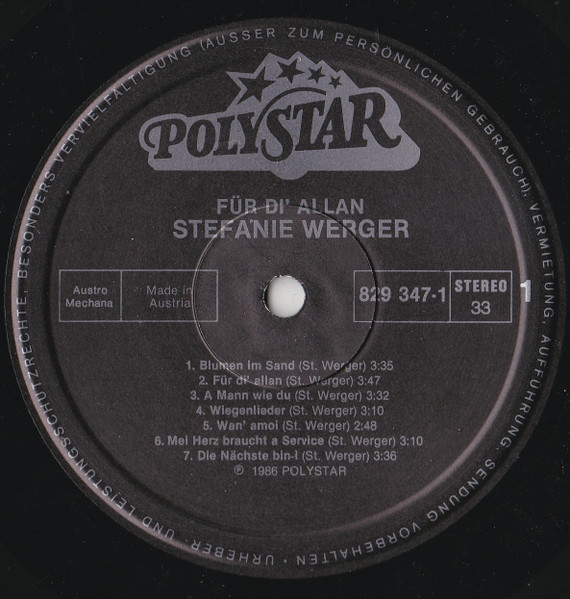 Vinyl / Stefanie Werger - Für Di Allan - Liebeslieder Und Balladen