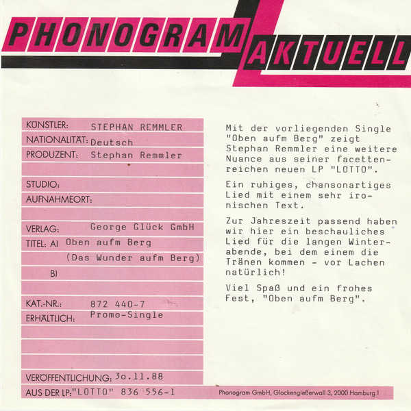 Vinyl / Stephan Remmler - Oben Aufm Berg (Das Wunder Aufm Berg)