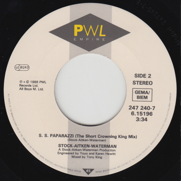 Label: PWL Records - Cat#: 247 240-7