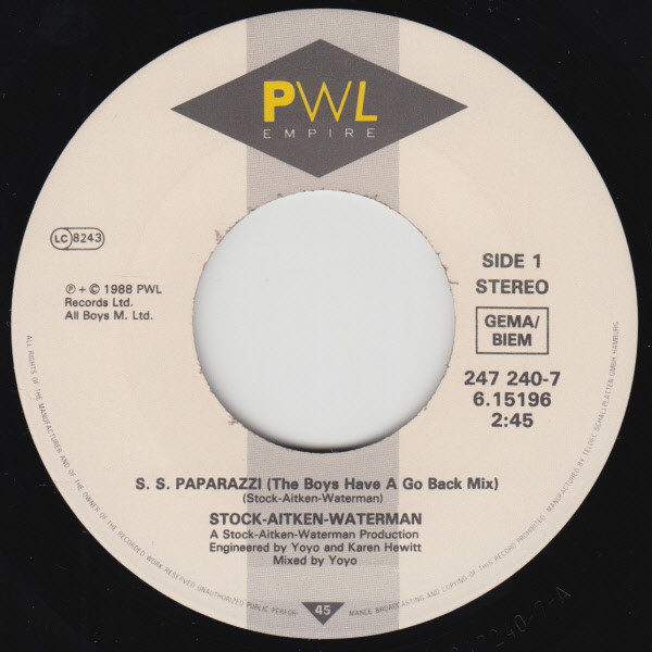 Vinyl / Stock, Aitken & Waterman - S.S. Paparazzi