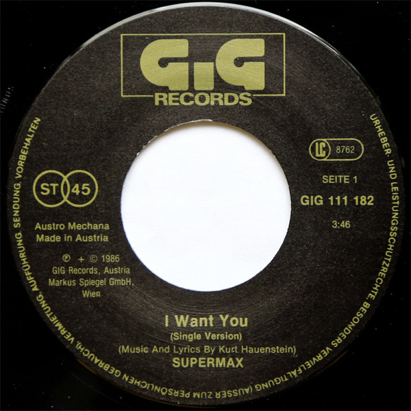 Vinyl / Supermax - I Want You (Single Vers.)