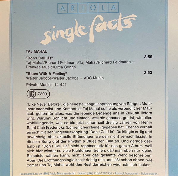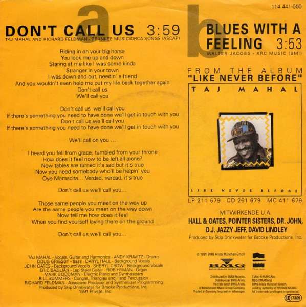 Vinyl / Taj Mahal Featuring Hall & Oates* - Don't Call Us
