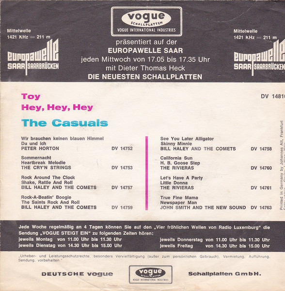 Vinyl / The Casuals - Toy / Hey, Hey, Hey