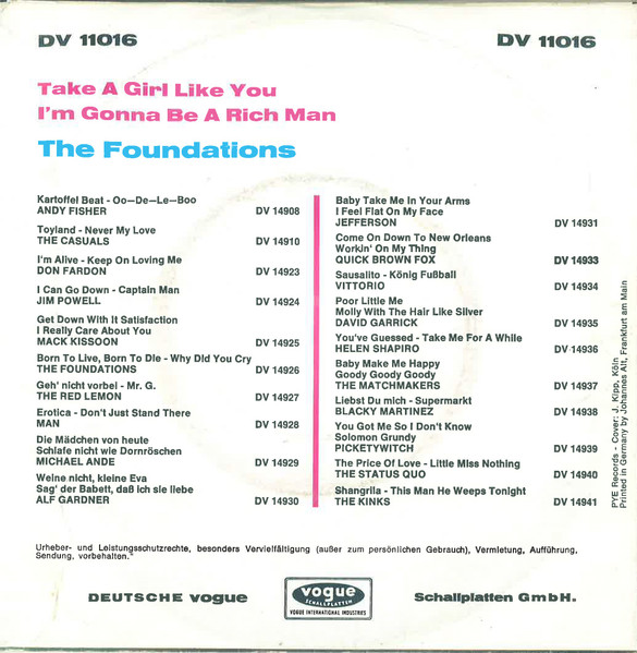 Vinyl / The Foundations - Take A Girl Like You