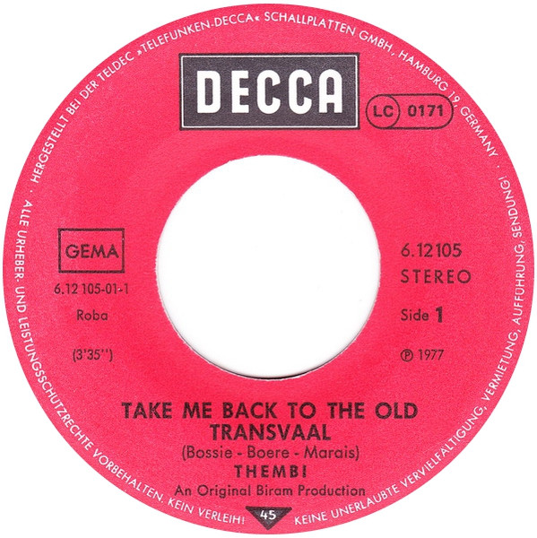 Vinyl / Thembi - Take Me Back To The Old Transvaal