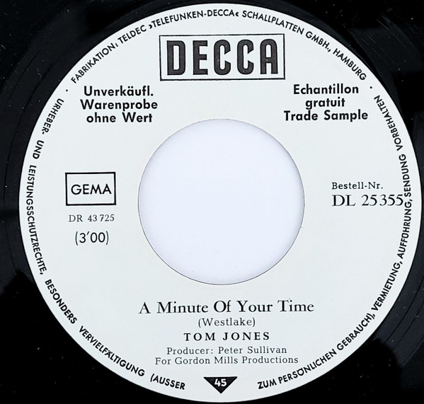 Vinyl / Tom Jones - A Minute Of Your Time / Looking Out My Window