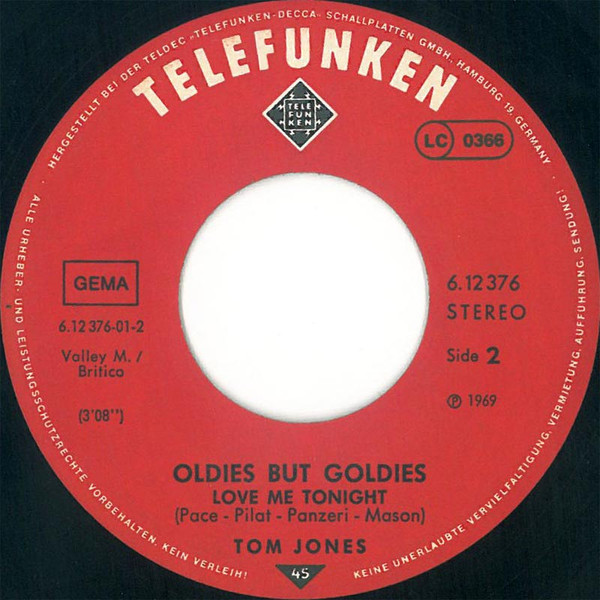 Vinyl / Tom Jones - Delilah / Love Me Tonight