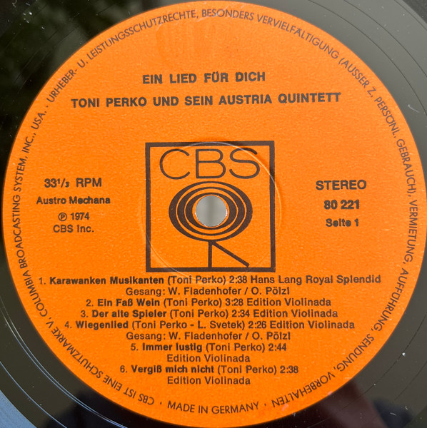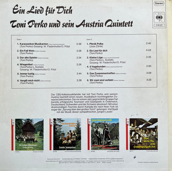 Vinyl / Toni Perko Und Sein Austria Quintett - Ein Lied Für Dich
