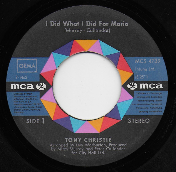 Vinyl / Tony Christie - I Did What I Did For Maria