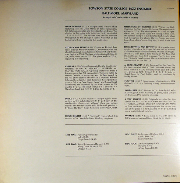 Label: Not On Label (The Towson State College Jazz Ensemble Self-released) - Cat#: none