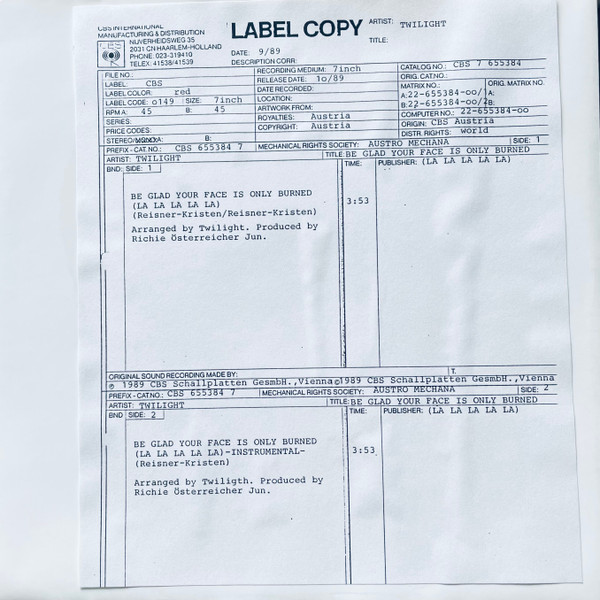 Format: Vinyl, 7", 45 RPM, Single, Test Pressing