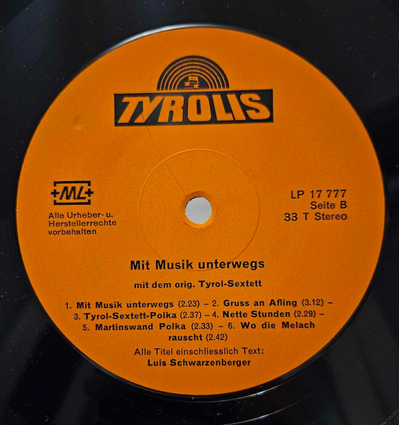 Vinyl / Tyrol Sextett - Mit Musik Unterwegs