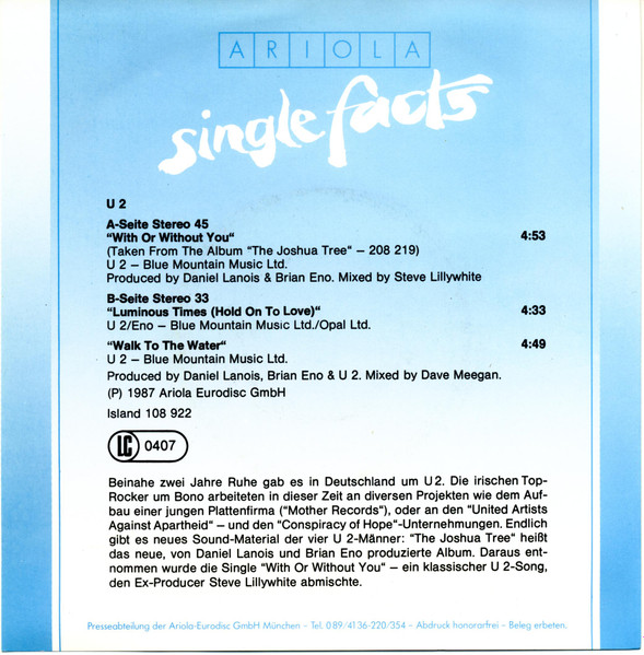 Label: Island Records - Cat#: 108 922