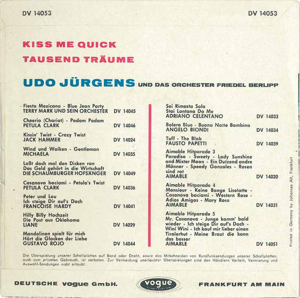 Vinyl / Udo Jürgens - Kiss Me Quick / Tausend Träume