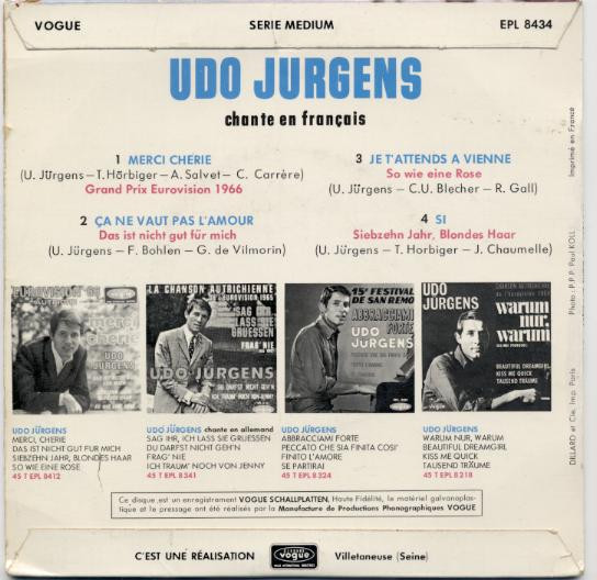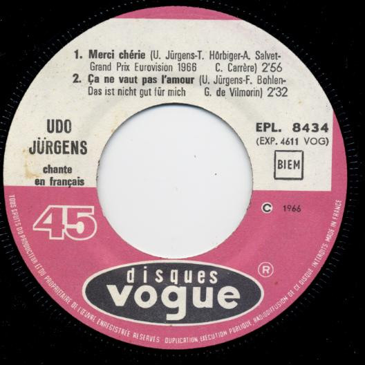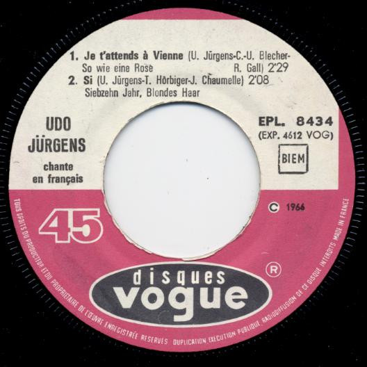 Label: Disques Vogue - Cat#: EPL 8434