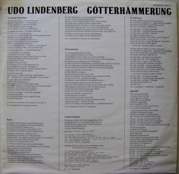 Vinyl / Udo Lindenberg + Panikorchester* - Götterhämmerung