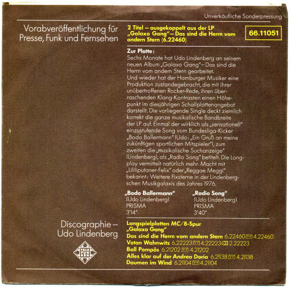 Vinyl / Udo Lindenberg Und Das Panikorchester - Galaxo Gang (Das Sind Die Herrn Vom Andern Stern)