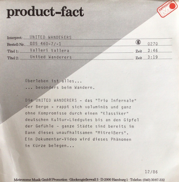 Vinyl / United Wanderers - Valleri Vallera
