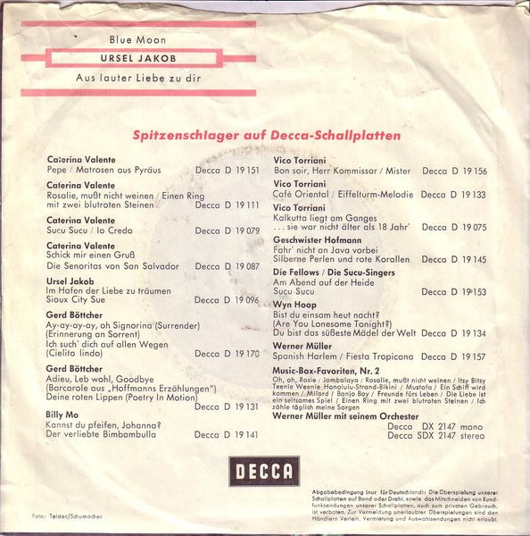 Label: Decca - Cat#: D 19 168