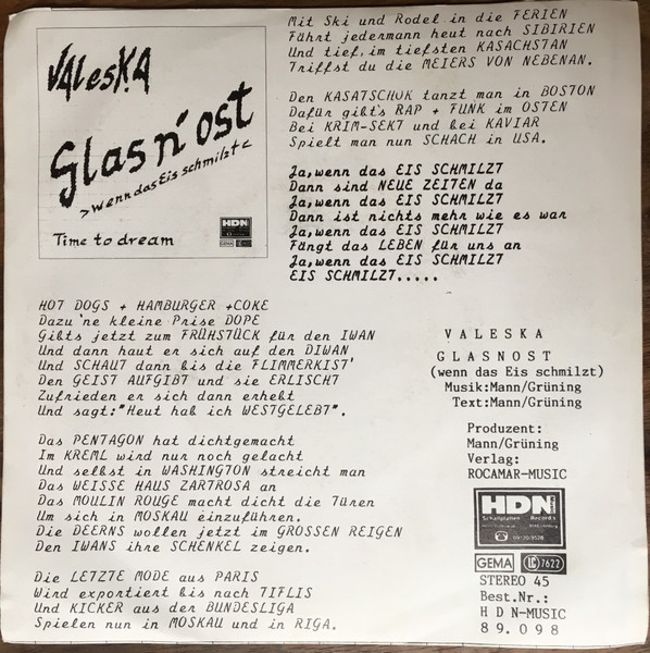 Vinyl / Valeska - Glas n'ost (Wenn Das Eis Schmilzt) / Time To Dream
