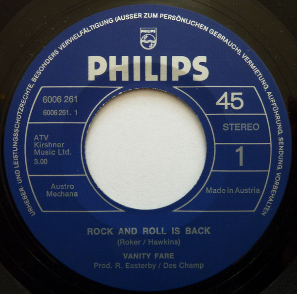 Vinyl / Vanity Fare - Rock And Roll Is Back / Making For The Sun