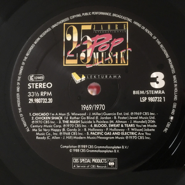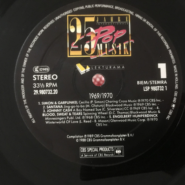 Vinyl / Various - 25 Jahre Internationale Popmusik - 1969 / 1970