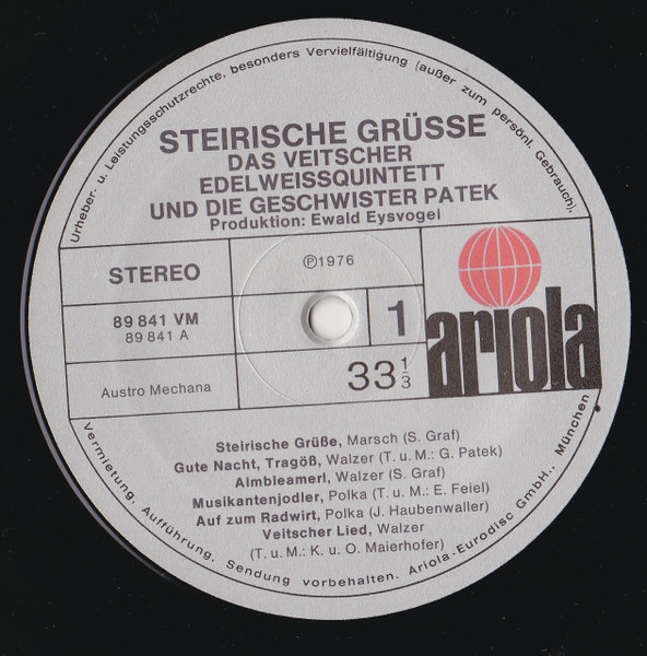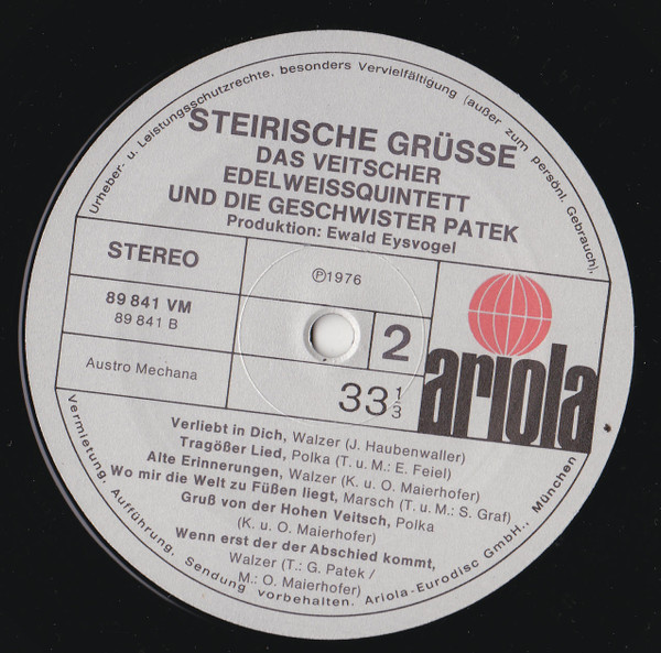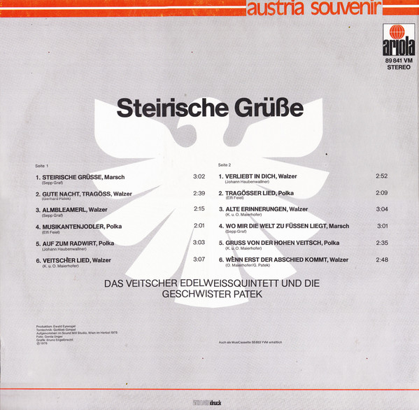 Vinyl / Veitscher Edelweißquintett Und Die Geschwister Patek* - Steirische Grüsse