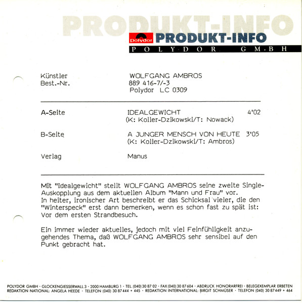 Vinyl / W. Ambros*, № 1* - Idealgewicht