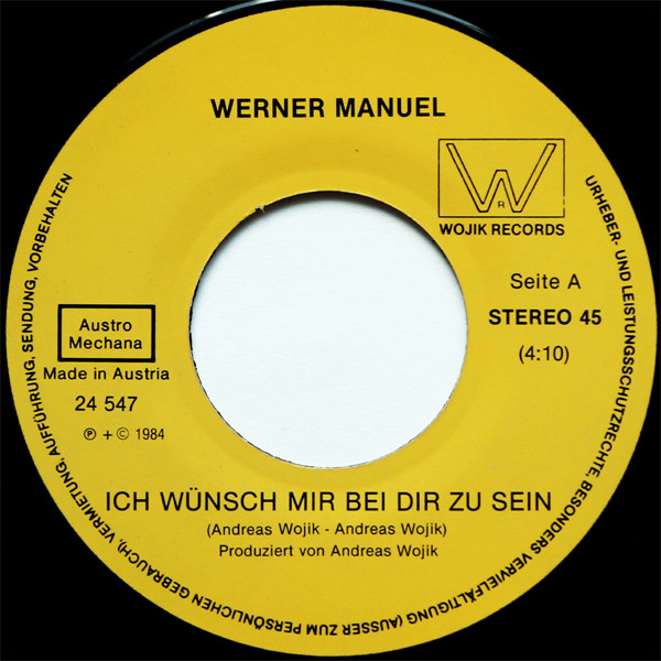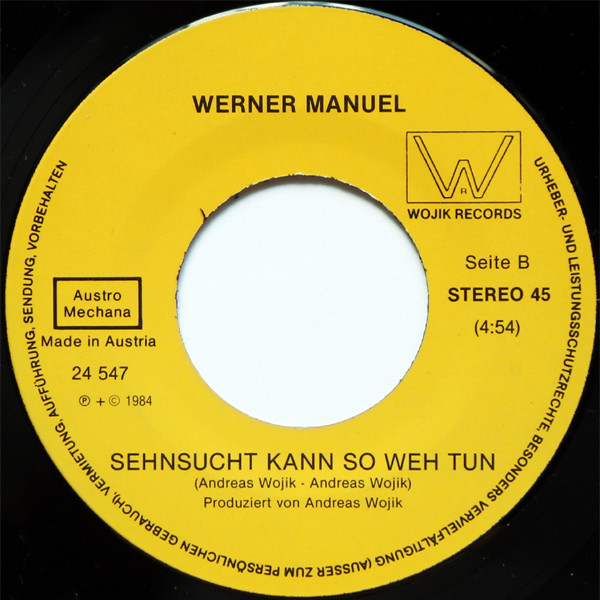 Vinyl / Werner Manuel - Ich Wünsch Mir Bei Dir Zu Sein / Sehnsucht Kann So Weh Tun